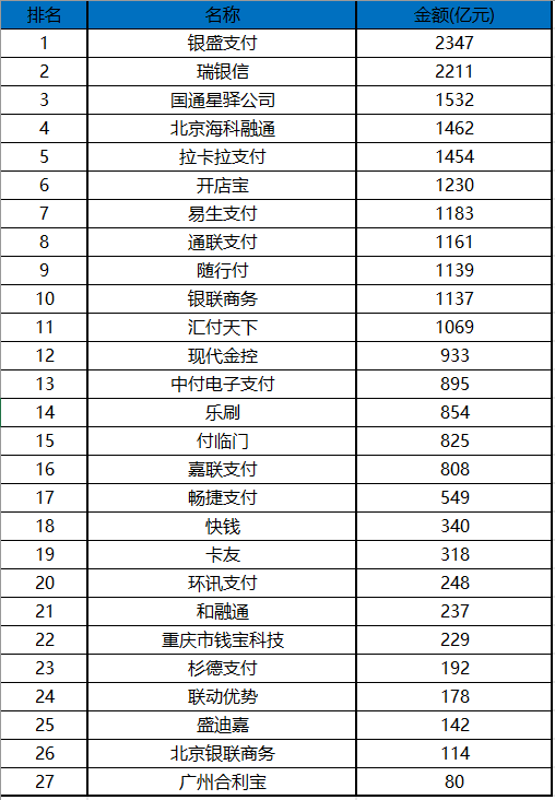 2020年最新版支付公司交易量排名